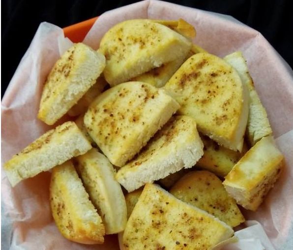 烤馍片,外脆里嫩,烤的金黄,咬一口咯吱咯吱的,撒上孜然辣椒,小编从小就特别喜欢吃。(图为烤馍片)