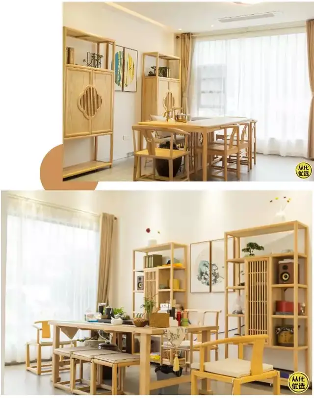 新中式风格又结合一些日式的装修,干净又有格调。卧室以暖调的灯光和天然的木色与大面积白色系调和,谱写出空间柔和舒然的大氛围。