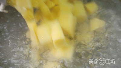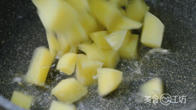 这1步使土豆外表形成一层焦脆外皮,炒制时就完全不会粘锅糊锅了