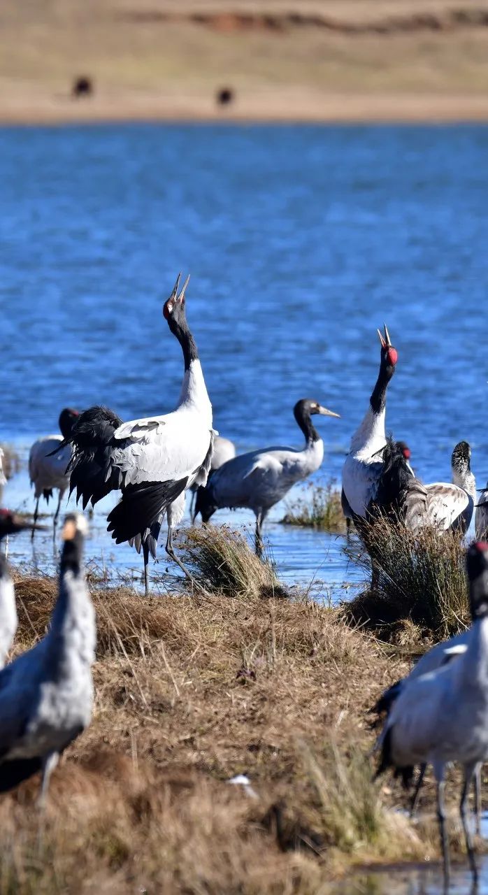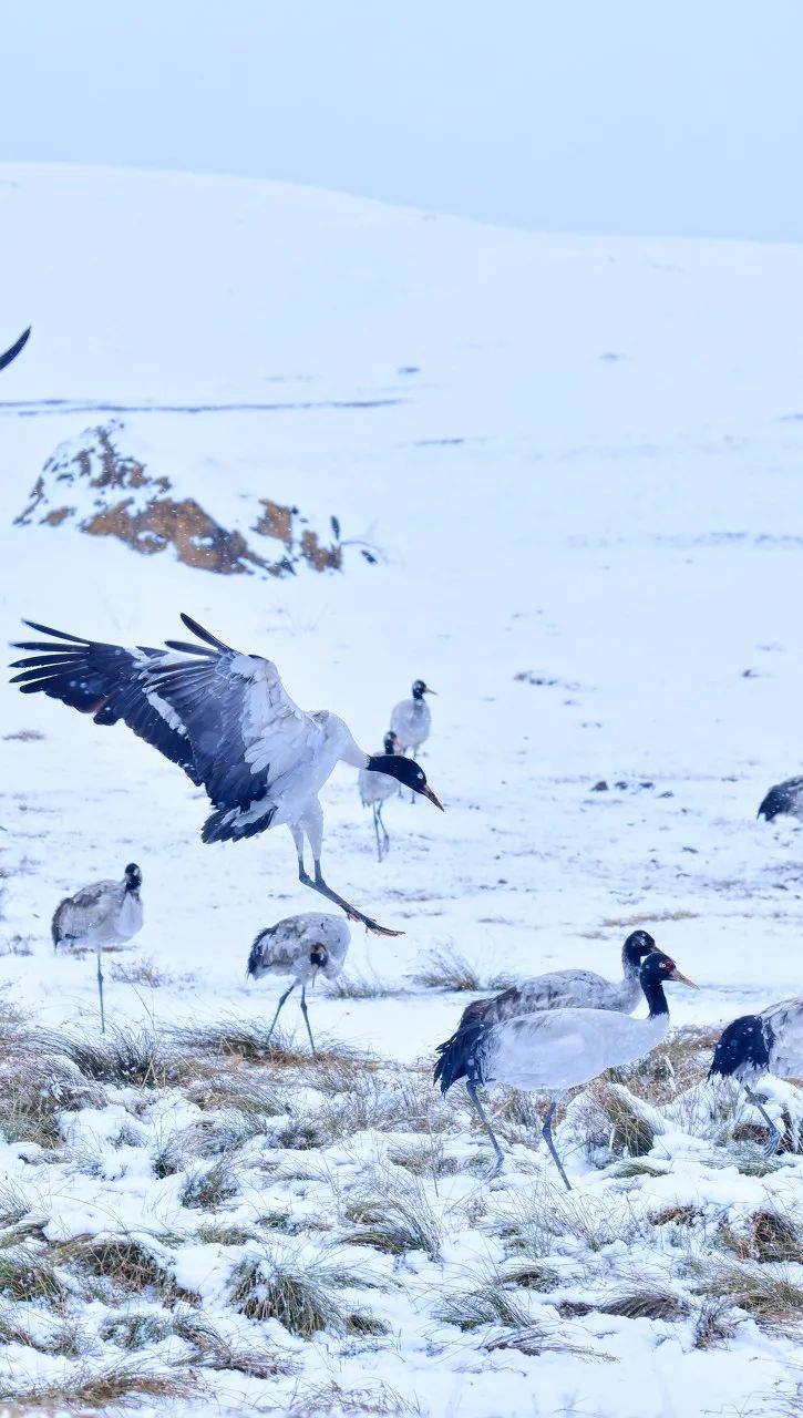 成千上万的黑颈鹤从远方飞来这里越冬。如果你是摄影爱好者,冬天在这里,无论是拍鸟,还是雪景,都很容易拍出大片。