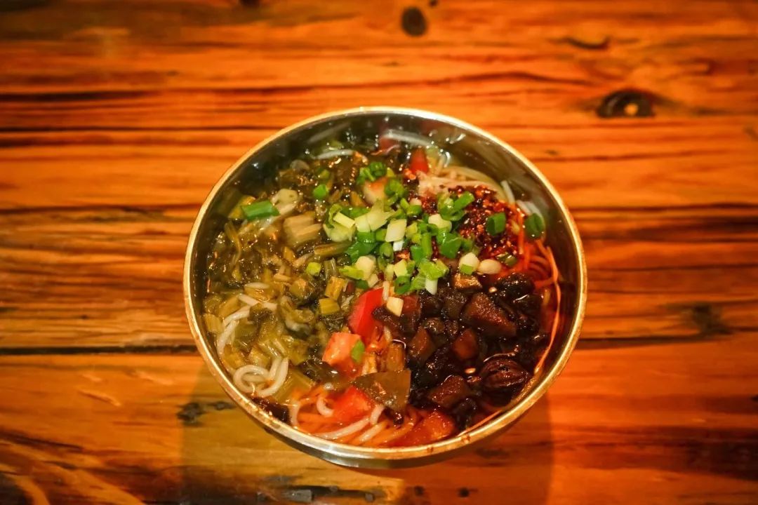 那就试一试昭通的“米线之王”红烧米线吧。高汤底配上酸菜、番茄、葱花、辣椒,再放上鲜香入味的红烧肉,味道一绝。