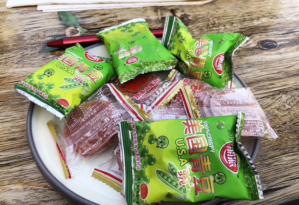 校门口豆皮,拌豆皮的汁是甜口的,有股酱香味儿,小兔不太喜欢,老曲倒是觉得好吃,我俩产生了分歧。