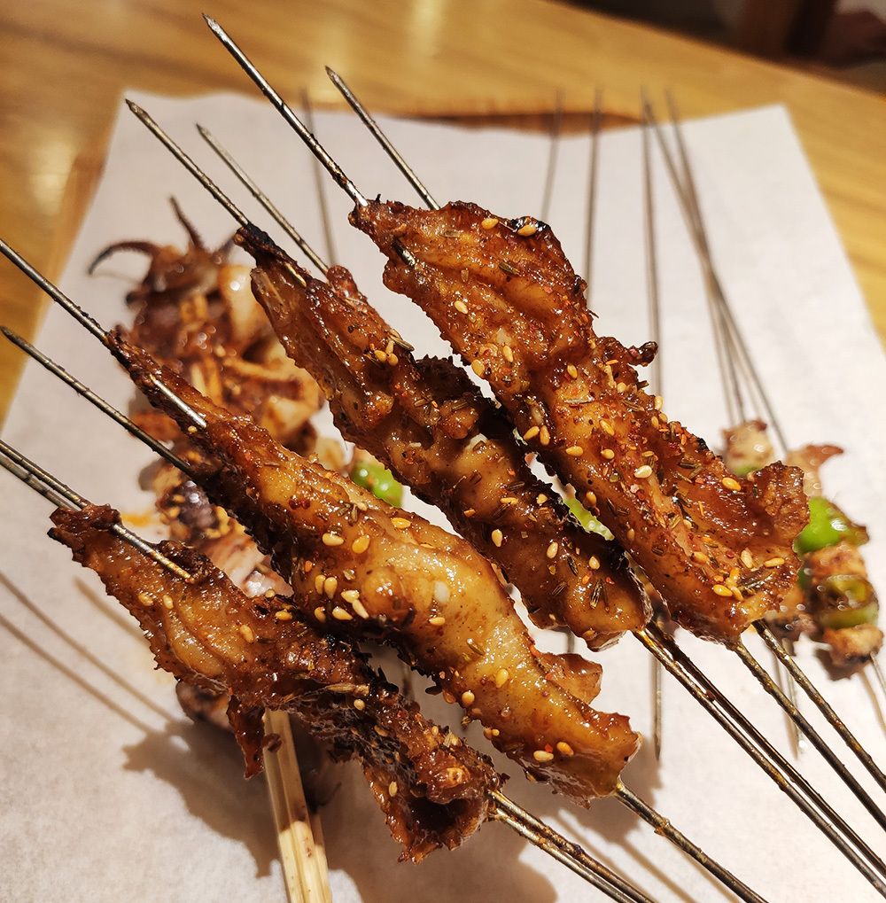 烤鸡爪子,还是脱骨的,有点不太习惯,脆骨筋皮一起咀嚼,适合牙口好的。