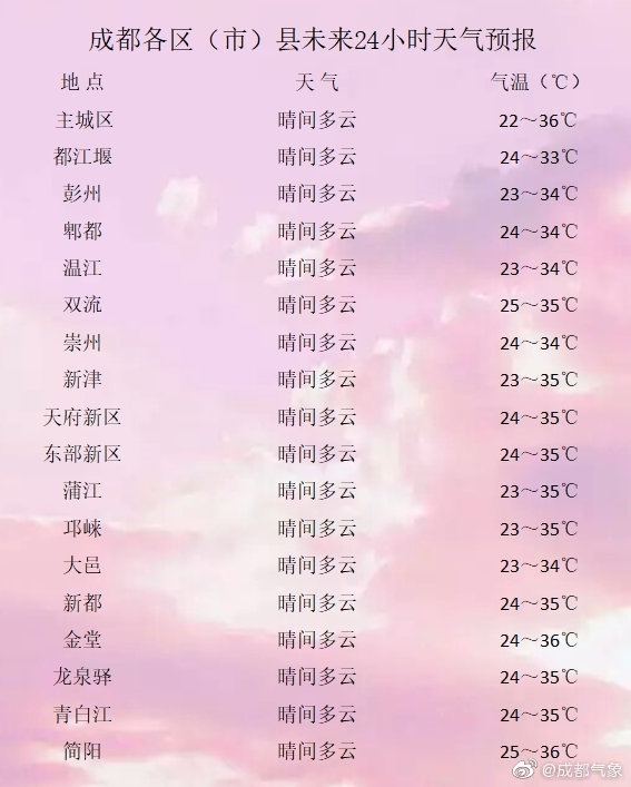 而成都则依然是“火力十足”。未来三天成都市依旧是晴热少雨的天气,最高气温仍在35℃以上;提醒小伙伴们35℃以上高温主要出现在13~18时段,要尽量减少户外活动,减少出行,要注意防暑降温。