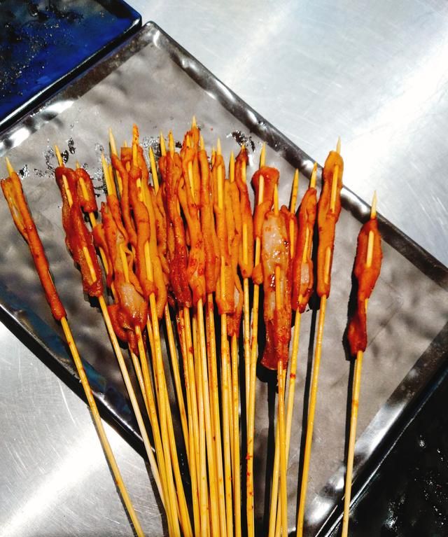 在他店面周围都是各种小吃餐饮店面,只有他家食客最多,对比很明显。透明的橱窗内可以清晰看到后厨有几个人穿着炮哥家小马甲在忙活,看起来应该是和我一样来学习的。尝过他家烧烤之后,确实味道独特。