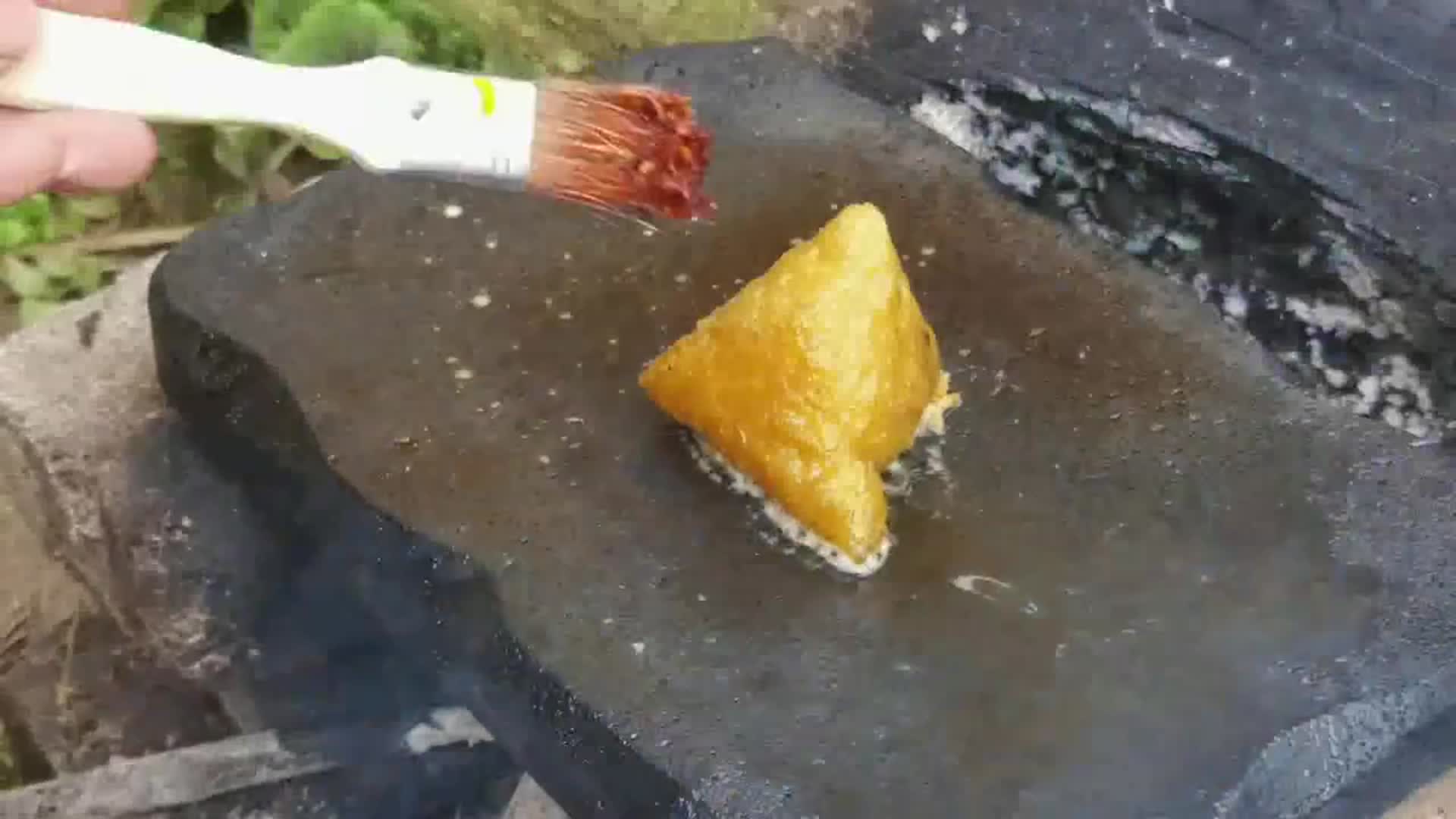 粽子咱们都吃过,拿去烤的吃过吗?农村小哥石板上烧烤美食
