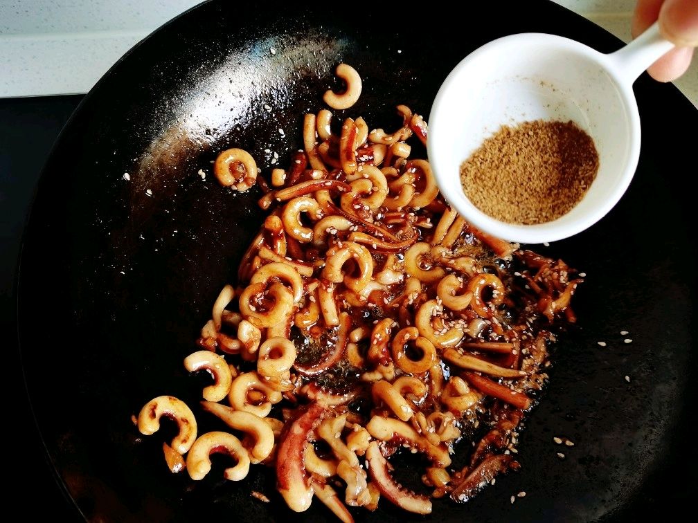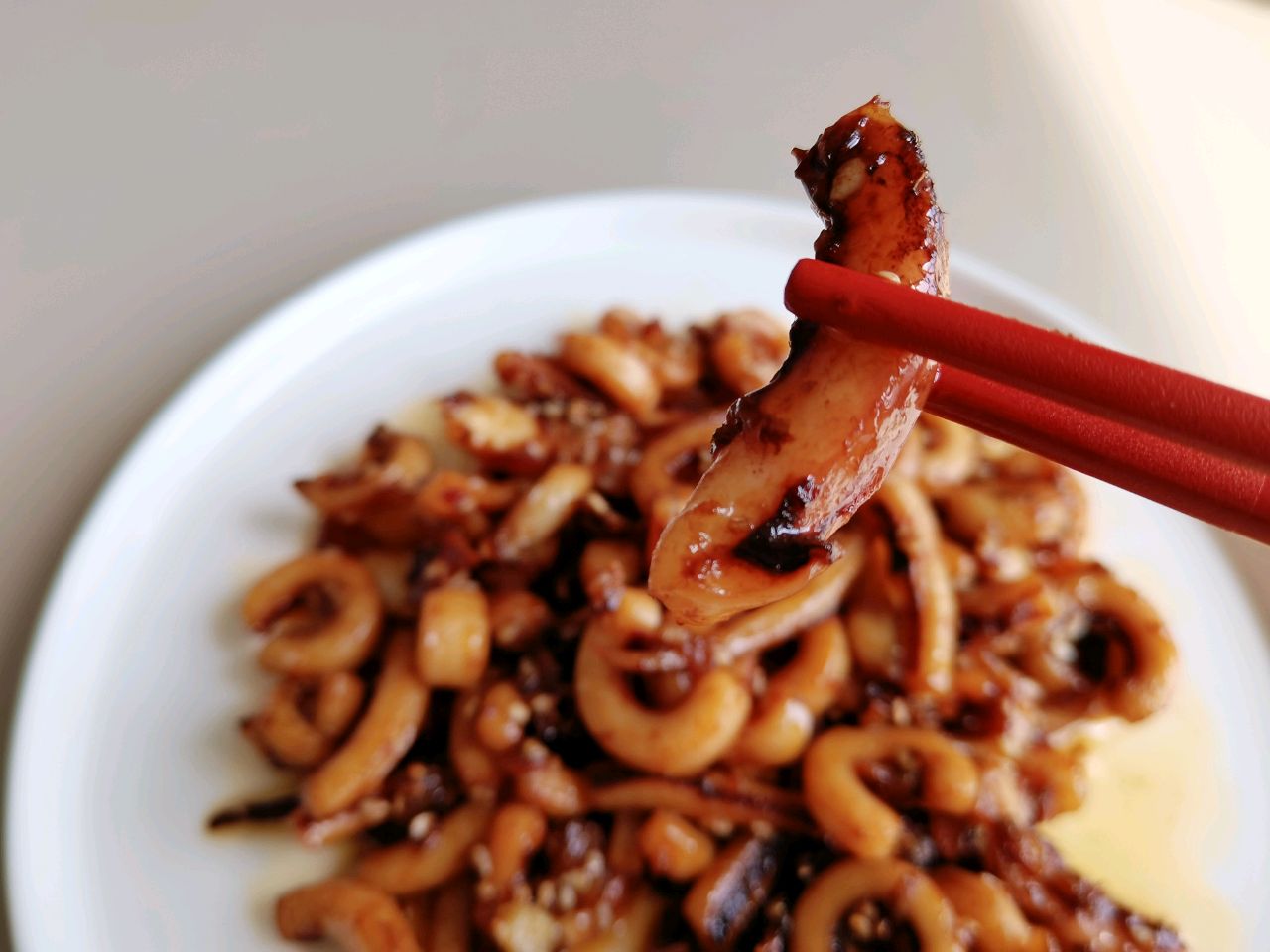 这样一道味道超棒的孜然鱿鱼就完成了,不得不说用孜然做鱿鱼,味道真的是香的不要不要的,好吃解馋,又辣又香,特别下饭,一碗饭根本不够吃,也可以把它当做平时煲剧的小食,美味永不嫌多。