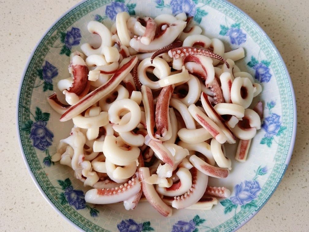 2、炒鱿鱼前,焯水时间要短,这样去腥还鲜嫩,焯水时除了放料酒还可以加几片姜片,去腥效果更好。